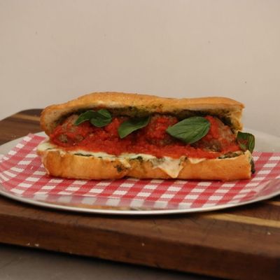 Pork and beef meatballs, slow cooked in our signature red sauce with pesto, and provolone cheese served on 8 inch Sub