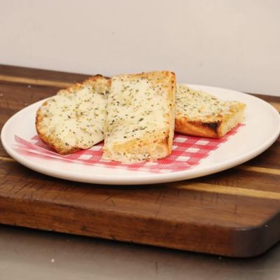 Crispy baguette filled with mozzarella and roasted garlic butter