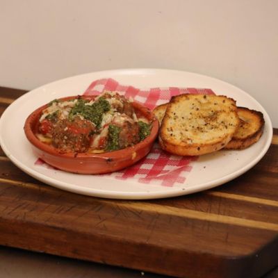 Pork and beef meatballs slow cooked in our signature red sauce Served with Parmesan, basil, and garlic bread